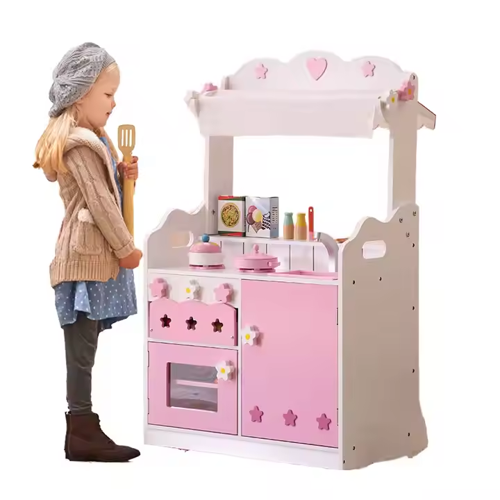 Двойная - боковая кухонная игрушка, размером с 42,5*60*97 см, в которых изображены богатые детали и достаточно места для удовлетворения разнообразных потребностей детского приготовления пищи.